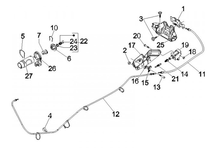 Kabel (pendek) untuk kunci bangku jok -PIAGGIO- Vespa GT 250 (ZAPM45102), Vespa GT L 125 (ZAPM31100, ZAPM31101), Vespa GT L 200 (ZAPM31200), Vespa GTS 125 (ZAPM31300, ZAPMA3100, ZAPMA3200, ZAPMA3700), Vespa GTS 150 (ZAPMA3200, ZAPMA3100), Vespa GTS 250 (Z