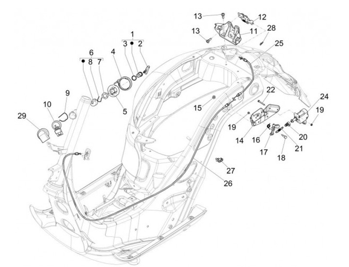 Kunci bangku kursi -PIAGGIO- Vespa GT 250 (ZAPM45102), Vespa GT L 125 (ZAPM31100, ZAPM31101), Vespa GT L 200 (ZAPM31200), Vespa GTS 125 (ZAPM31300, ZAPMA3100, ZAPMA3200, ZAPMA3700), Vespa GTS 150 (ZAPMA3200, ZAPMA3100), Vespa GTS 250 (ZAPM45100, ZAPM45101
