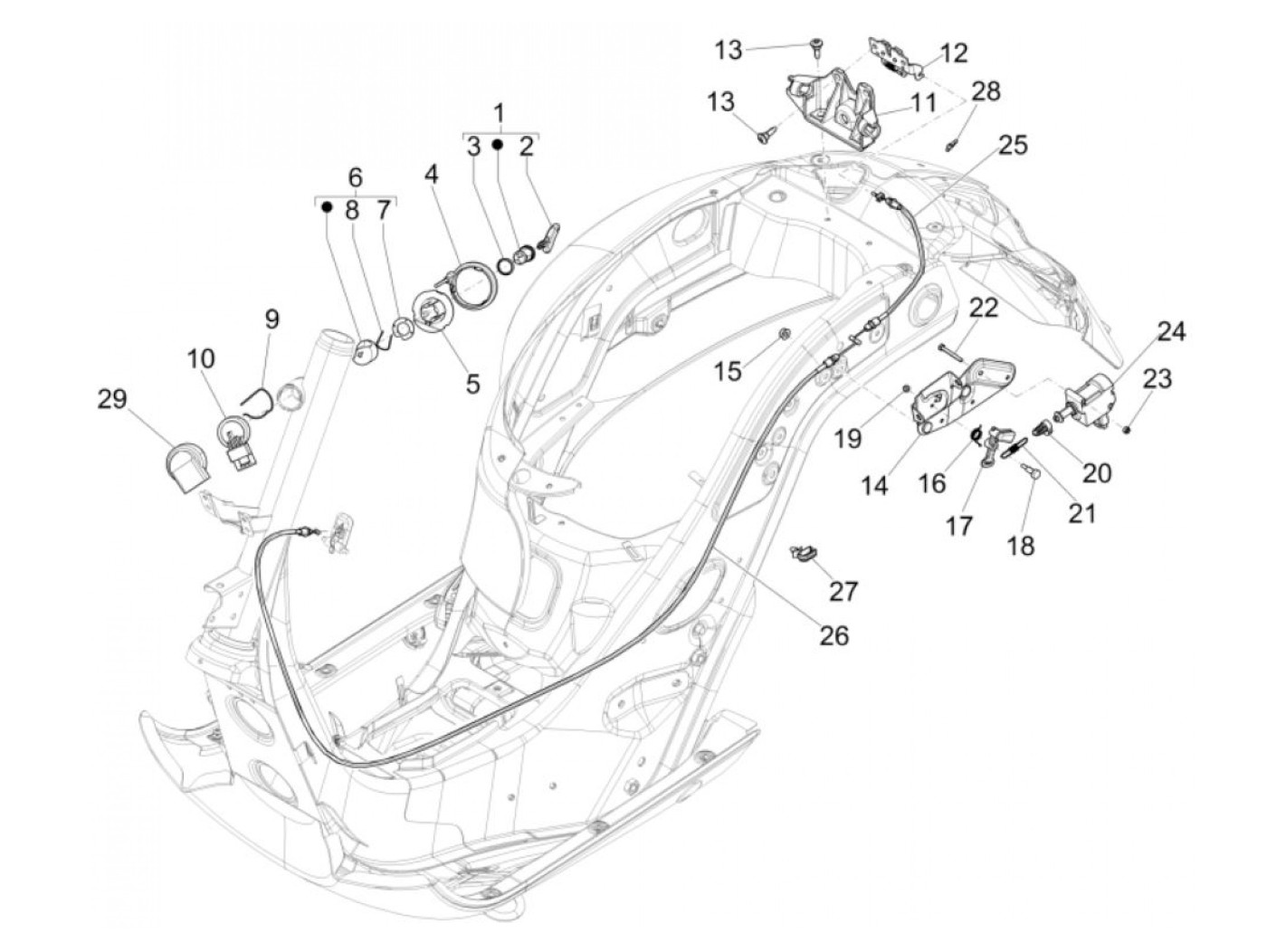 Kunci bangku kursi -PIAGGIO- Vespa GT 250 (ZAPM45102), Vespa GT L 125 (ZAPM31100, ZAPM31101), Vespa GT L 200 (ZAPM31200), Vespa GTS 125 (ZAPM31300, ZAPMA3100, ZAPMA3200, ZAPMA3700), Vespa GTS 150 (ZAPMA3200, ZAPMA3100), Vespa GTS 250 (ZAPM45100, ZAPM45101