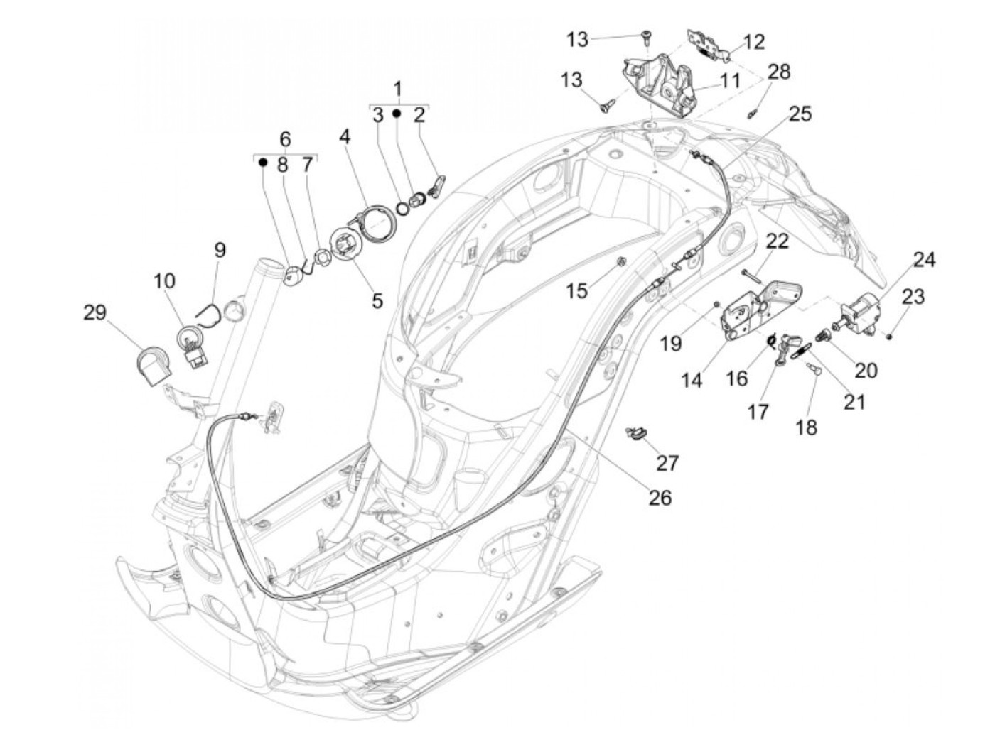 Kunci bangku kursi -PIAGGIO- Vespa GT 250 (ZAPM45102), Vespa GT L 125 (ZAPM31100, ZAPM31101), Vespa GT L 200 (ZAPM31200), Vespa GTS 125 (ZAPM31300, ZAPMA3100, ZAPMA3200, ZAPMA3700), Vespa GTS 150 (ZAPMA3200, ZAPMA3100), Vespa GTS 250 (ZAPM45100, ZAPM45101