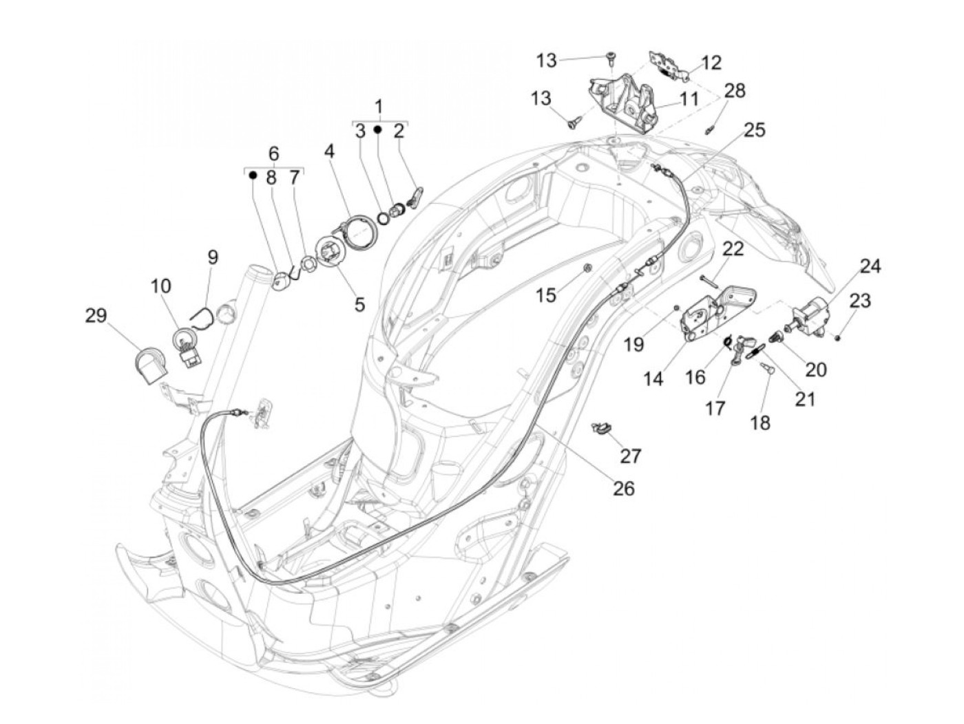 Kunci bangku kursi -PIAGGIO- Vespa GT 250 (ZAPM45102), Vespa GT L 125 (ZAPM31100, ZAPM31101), Vespa GT L 200 (ZAPM31200), Vespa GTS 125 (ZAPM31300, ZAPMA3100, ZAPMA3200, ZAPMA3700), Vespa GTS 150 (ZAPMA3200, ZAPMA3100), Vespa GTS 250 (ZAPM45100, ZAPM45101