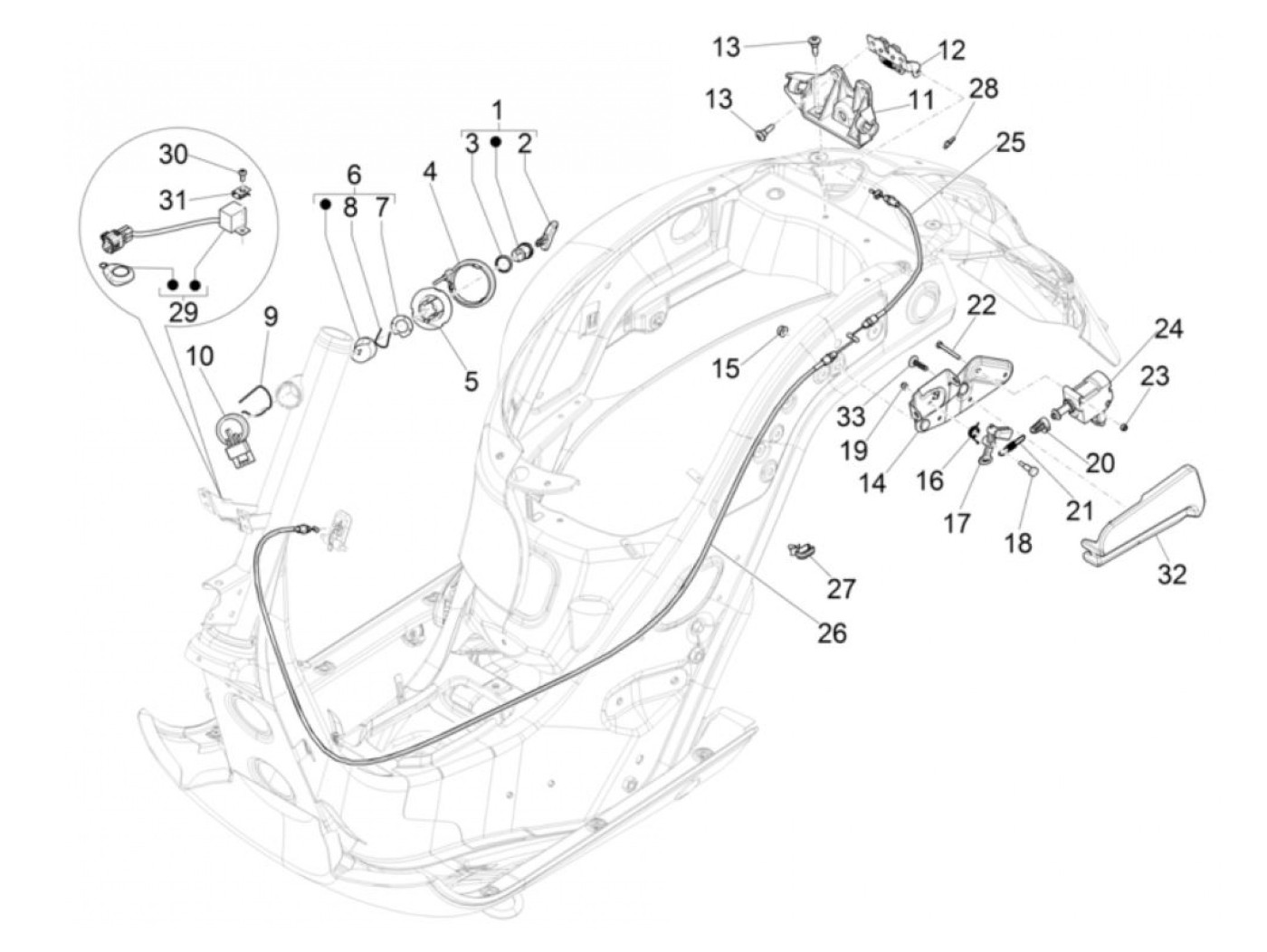 Kunci bangku kursi -PIAGGIO- Vespa GT 250 (ZAPM45102), Vespa GT L 125 (ZAPM31100, ZAPM31101), Vespa GT L 200 (ZAPM31200), Vespa GTS 125 (ZAPM31300, ZAPMA3100, ZAPMA3200, ZAPMA3700), Vespa GTS 150 (ZAPMA3200, ZAPMA3100), Vespa GTS 250 (ZAPM45100, ZAPM45101