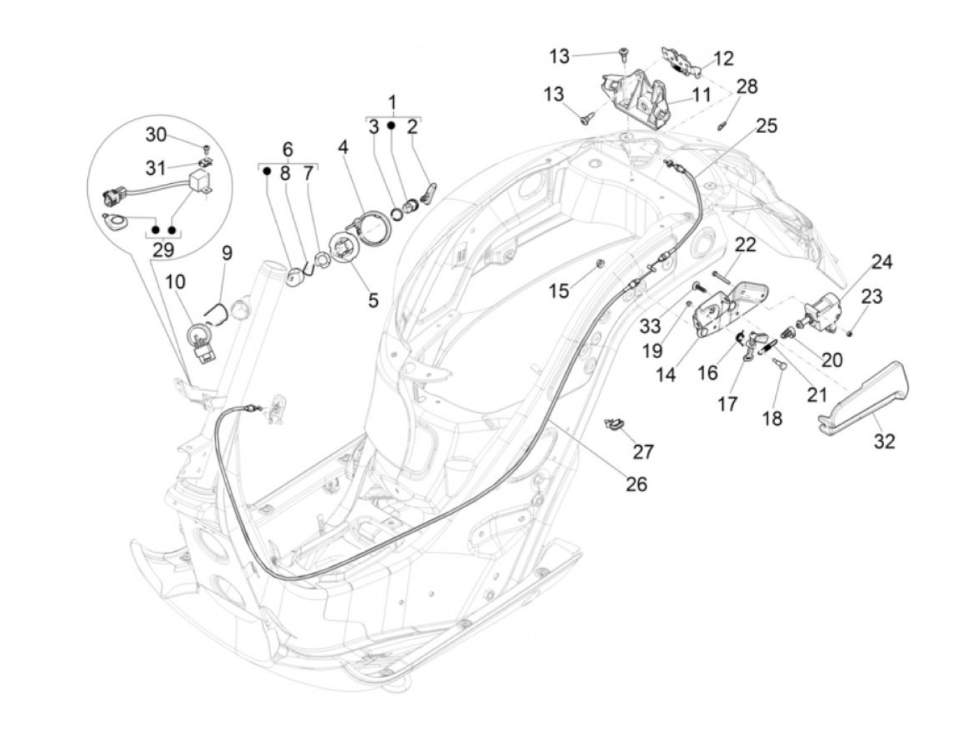 Kunci bangku kursi -PIAGGIO- Vespa GT 250 (ZAPM45102), Vespa GT L 125 (ZAPM31100, ZAPM31101), Vespa GT L 200 (ZAPM31200), Vespa GTS 125 (ZAPM31300, ZAPMA3100, ZAPMA3200, ZAPMA3700), Vespa GTS 150 (ZAPMA3200, ZAPMA3100), Vespa GTS 250 (ZAPM45100, ZAPM45101