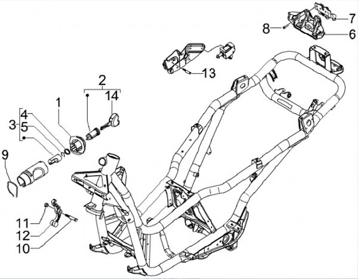 Bushing On-Off-Lock -PIAGGIO- Vespa GT 250 (ZAPM45102), Vespa GT L 125 (ZAPM31100, ZAPM31101), Vespa GT L 200 (ZAPM31200), Vespa GTS 125 (ZAPM31300), Vespa GTS 250 (ZAPM45100, ZAPM45101), Vespa GTS 300 (ZAPM45200, ZAPM45202), Vespa GTS Super 125 (ZAPM4530