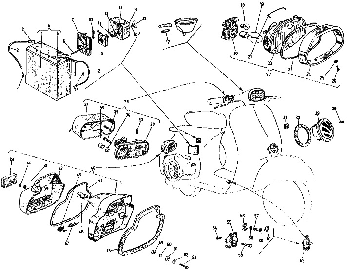 Sakelar lampu rem DC (dari tahun pembuatan 1958 dengan baterai) -BGM ASLI- Vespa VNB, VBA1T, VBB1T, VLA1T, GS150/GS3 (VS1-5T), GS160/GS4 (VSB1T), SS180 (VSC1T), Sprint (VLB1T), GT/GTR125 (VNL2T), TS125 (VNL3T), Rally180/200 (VSD1T/VSE1T) - TANPA kontak -