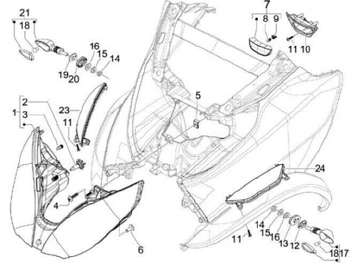 Indikator -PIAGGIO- Gilera Fuoco 500, GP 800, Piaggio MP3 250-500, Aprilia SRV 850 - putih - kiri depan/kanan belakang
