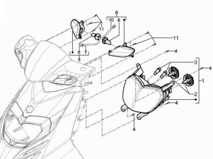 Lampu depan -PIAGGIO- TPH 50-125 baru (mulai tahun 2010) (LBMC501, LBMM701, ZAPM501)