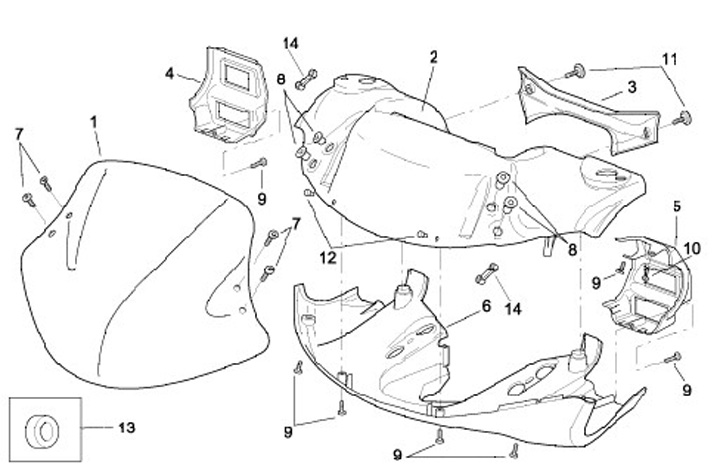 Semak berulir untuk kaca depan kokpit -PIAGGIO- Gilera DNA, Runner (dari tahun 2006), Piaggio NRG Extreme, NRG MC3, NRG Power