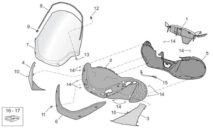 Semak berulir untuk kaca depan kokpit -PIAGGIO- Gilera DNA, Runner (dari tahun 2006), Piaggio NRG Extreme, NRG MC3, NRG Power