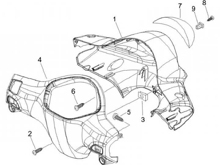 Mur plastik -PIAGGIO- 3.9mm (digunakan untuk memasang kaskade Vespa PX (dari tahun 1984) di bagian atas)