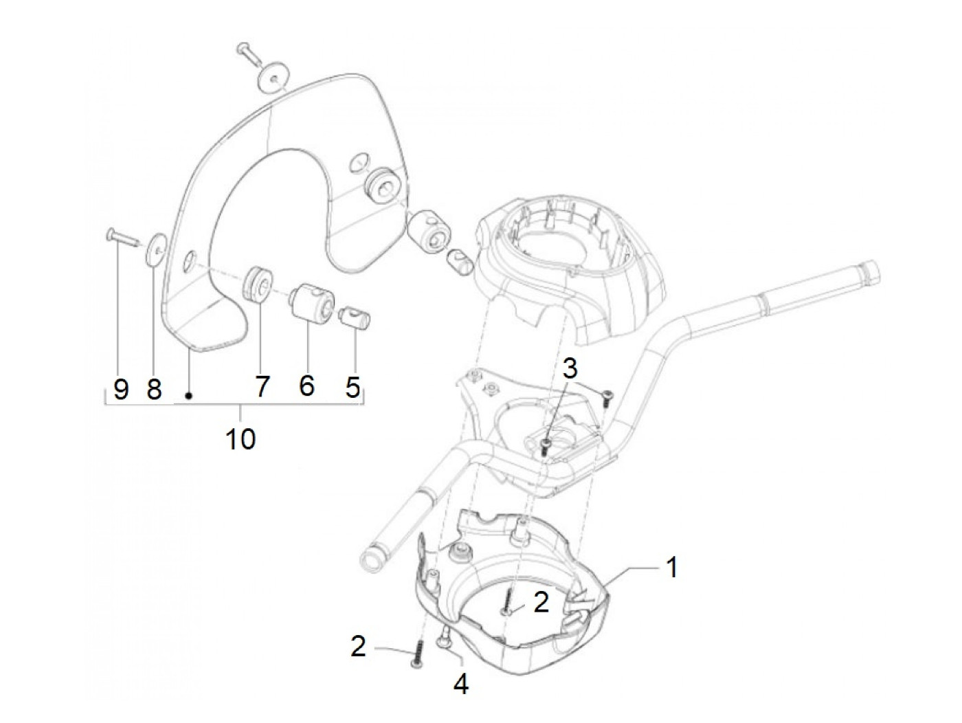 Braket untuk kaca depan, hitam -PIAGGIO- Vespa GTS Super 300 (ZAPM45200), Vespa GTV 300 (ZAPMA3302), Vespa GTV HPE 300 (ZAPMA3602, ZAPMA362, ZAPMD3102), Vespa LXV 125 (ZAPM68102), Vespa LXV 50 (ZAPC38102, ZAPC38902), Piaggio Liberty 125 (ZAPM38900,