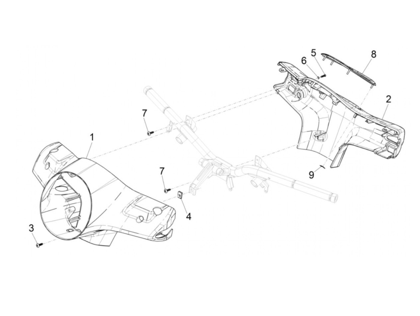 Fairing stang belakang -PIAGGIO- Vespa GTS 125 (ZAPMA3700), Vespa GTS HPE 300 (ZAPMA3600, ZAPMD310), Vespa GTS Super 125 (ZAPMA3700), Vespa GTS Super HPE 300 (ZAPMA360, ZAPMD3100)