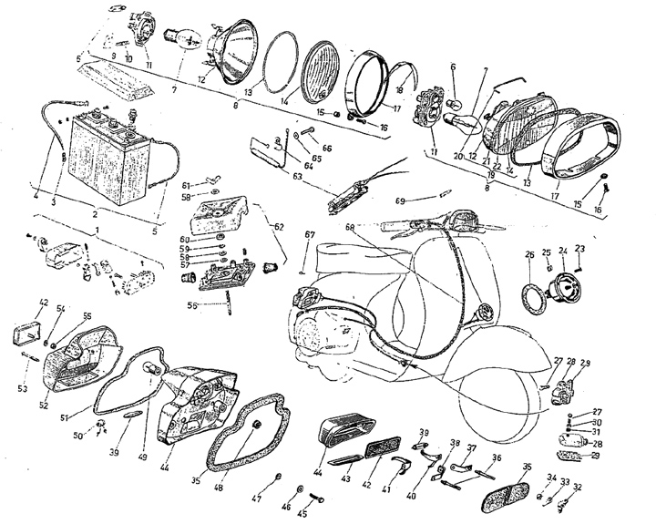 Kabel / rangka lampu belakang karet -PIAGGIO- Vespa
