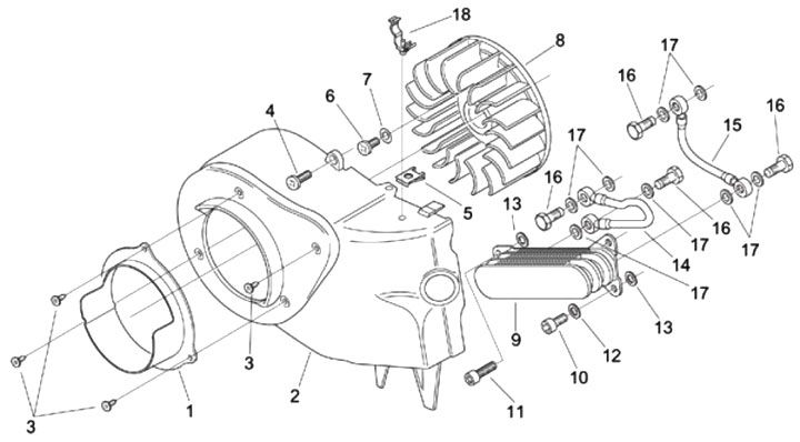 Saluran oli untuk radiator -PIAGGIO- Vespa ET4 125, Piaggio Hexagon 125 LX4, Liberty 125, Sfera 125 RST, Aprilia Habana 125, Mojito 125