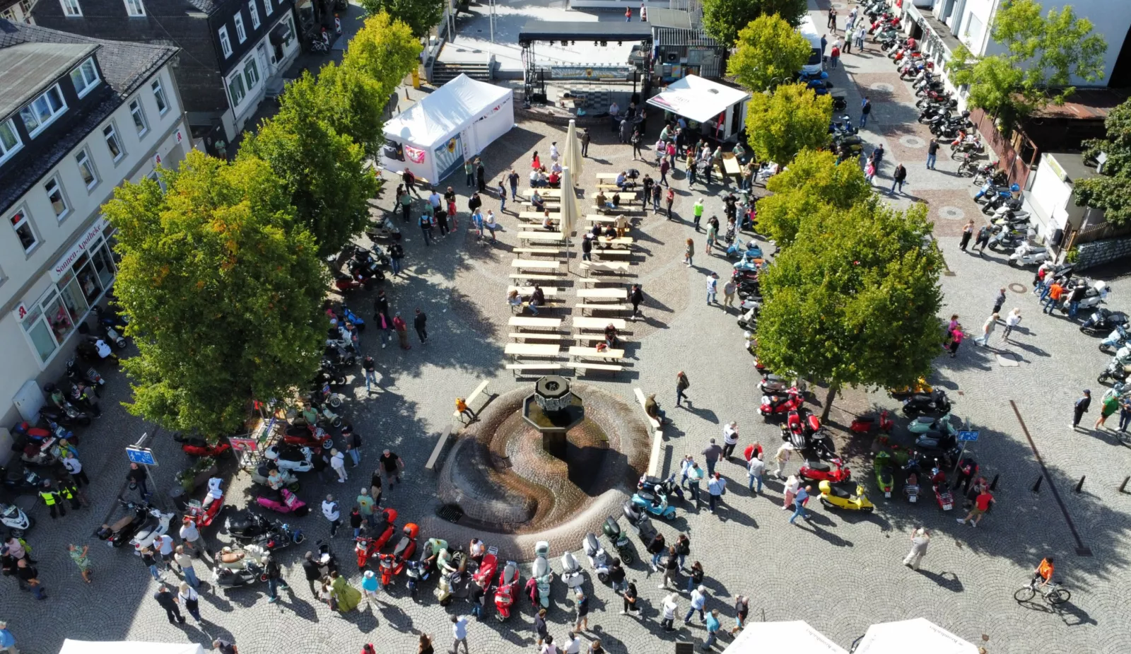 Pada tanggal 7 September 2025, Haiger mengalami peristiwa istimewa: pertemuan Vespa pertama kami di alun-alun pasar melebihi semua harapan. Lebih dari 400 pengunjung dan 250 Vespa, dari model ultra-modern hingga klasik berusia 60 tahun, mengubah kota ini menjadi sepotong kecil Italia. Hari itu adalah hari yang penuh kegembiraan, kebersamaan, dan solidaritas - dan semuanya demi tujuan yang baik.