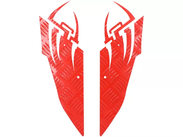 Entah itu putih penuh warna, misalnya, atau putih di bagian depan dan merah di bagian belakang, atau sebaliknya, mulai sekarang Anda dapat menentukan gaya yang paling cocok dengan skuter Anda! Berkat potongan desain tribal, dua bagian warna saling menonjol di tengah, menciptakan perpaduan warna yang sangat cerdik dan harmonis.