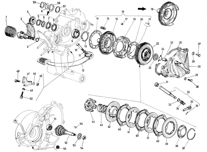 Pegas kopling -PIAGGIO- Vespa V50 (V5A1T, V5A2T, V5A3T, V5B1T, V5B2T, V5B3T, V5B3T, V5B4T, V5R1T, V5SA1T), SS50 (V5SS1T), SR50 (V5SS2T), V90 (V9A1T), SS90 (V9SS1T), V90 Racer (V9SS2T), 125 Nuovo (VMA1T), PV125 (VMA2T), ET3 125 (VMB1T), PK 50 (V5X1T), PK 5