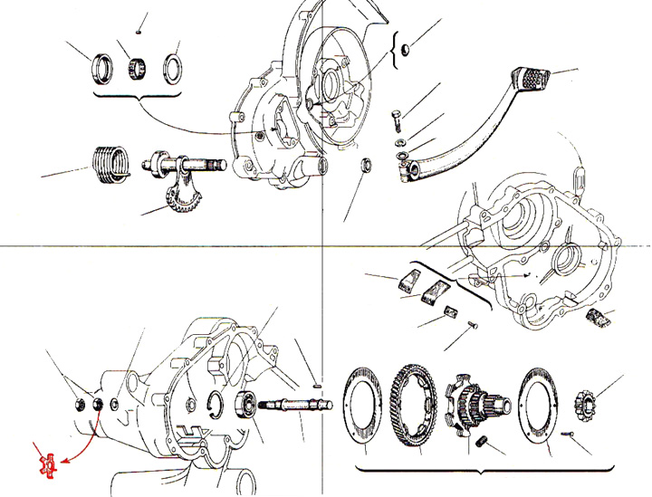 Poros PTO lengkap termasuk roda gigi primer 67 gigi -KUALITAS OEM, bantalan dudukan Ø37mm- Vespa 3 kecepatan VBA1T, VNB1T, VNB2T, VNB3T, VNB4T - 14-20-27 gigi