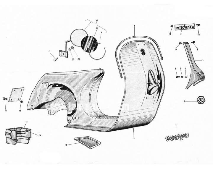 Huruf pada pelat kaki -KUALITAS OEM- Vespa - Vespa PV125 (dari tahun 1968), Vespa Rally200 (dari tahun 1976), Vespa TS, Vespa V50 Special, Vespa PX (dari tahun 1977-1983)