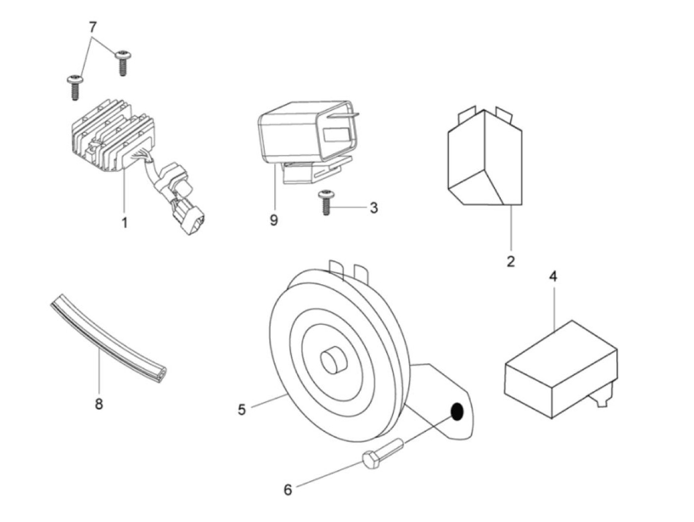 Regulator tegangan -PIAGGIO- 5-pin 12V- Vespa Primavera 125 (ZAPMD1100), Vespa Primavera 150 (ZAPMD120), Vespa Sprint 125 (ZAPMD1101), Vespa Sprint 150 (ZAPMD1201), Vespa VX 150 (MET858E, METM858E, METM8500), Vespa VXL 125 (MET0002DA, MET0000DA), Vespa VX
