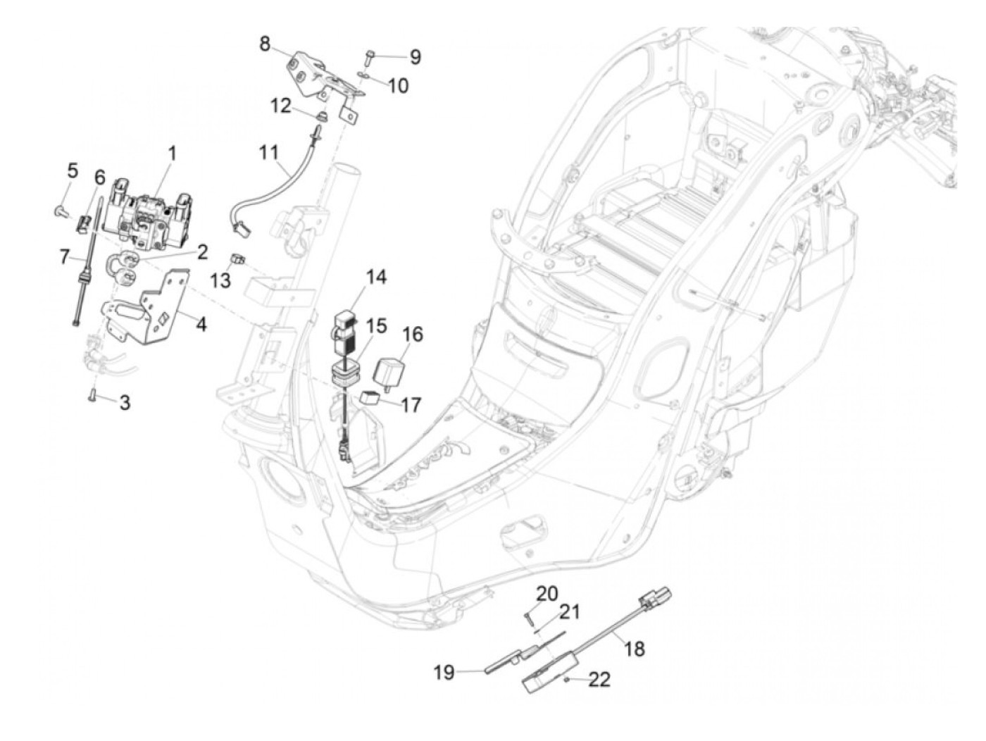 Braket untuk relai -PIAGGIO- Vespa GTV 300 (ZAPMA3302), Vespa Primavera 125 (ZAPM81100, ZAPM81101, ZAPMA1100, RP8M82500, RP8M82821, RP8M82100, RP8M82310, ZAPMA1101, ZAPMD1100), Vespa Primavera 150 (ZAPM81200, ZAPMA1200, ZAPM81201, ZAPMA1201, ZAPMD120), Ve