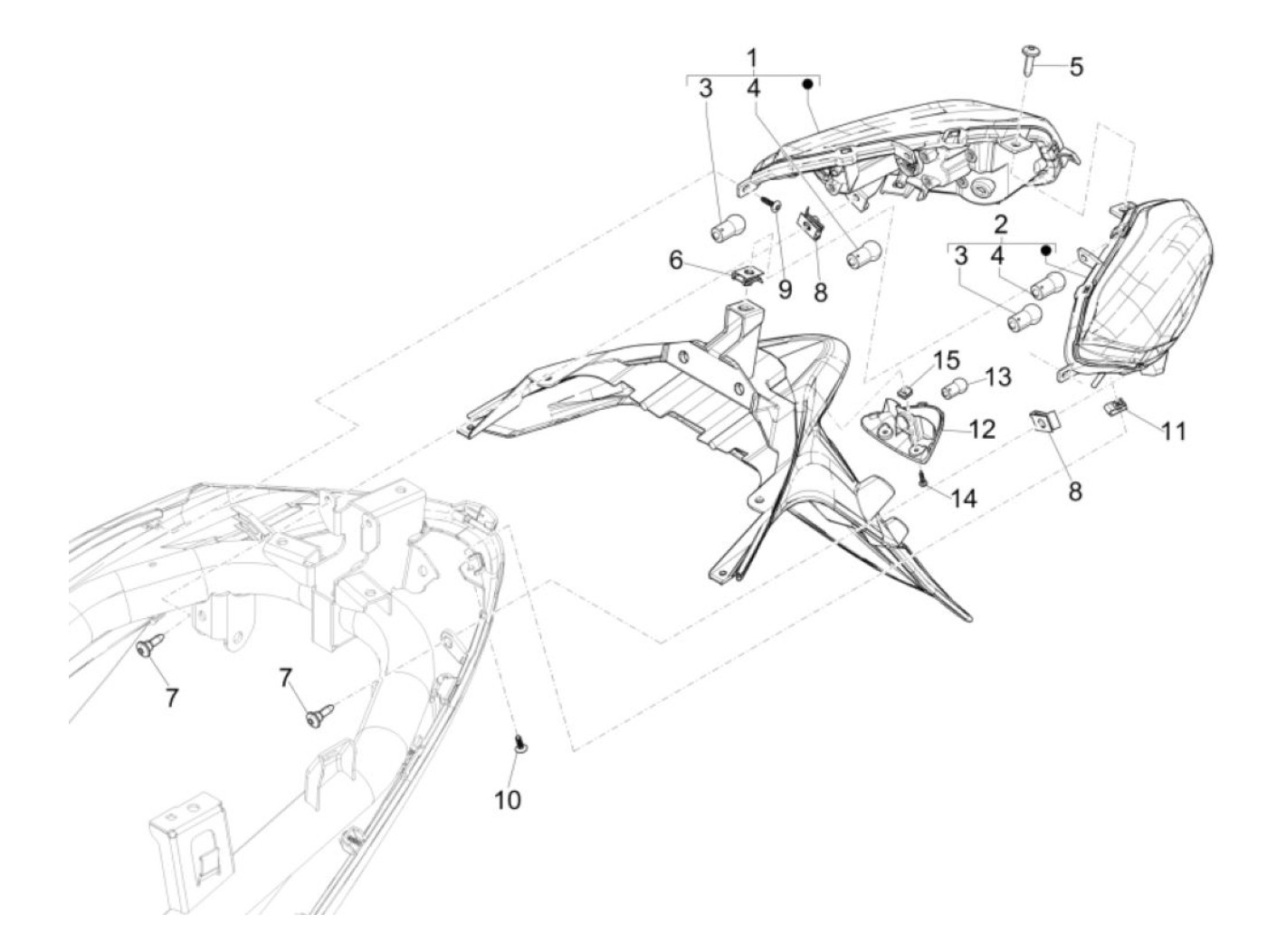 Bohlam -W2,1x9,5d, dasar kaca- 12V 16W - Putih - Lampu belakang Vespa GTS 125-300
