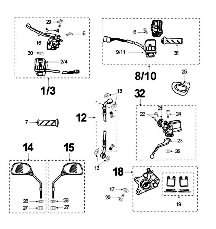 Unit sakelar kiri dengan tuas rem -PEUGEOT- Peugeot Speedfight 1 AC/LC, Vivacity (-2008)