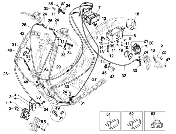 Unit kontrol ABS -PIAGGIO- Vespa GTS 125 (ZAPMA3100), Vespa GTS 150 (ZAPMA3200, ZAPMA3100), Vespa GTS 300 (ZAPM45200, ZAPM45202, ZAPMA3300), Vespa GTS Super 125 (ZAPM45300, ZAPMA3100, ZAPM45301), Vespa GTS Super 300 (ZAPM45200, ZAPM45202, ZAPMA3300), Vesp