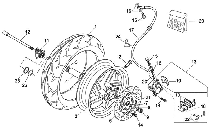 Set paking kaliper rem -APRILIA- Aprilia Leonardo 125 (ZD4MB03), Leonardo ST 125 (ZD4MB06, ZD4TB), SR 50 (ZD4RLA, ZD4TEA, ZD4PX), SR 50 R (ZD4VFD00), SR 50 R Pabrik (ZD4VFB, ZD4VFO), SR 50 DITech (ZD4RLB, ZD4RLD, ZD4RLE, ZD4TE00, ZD4VFB00)