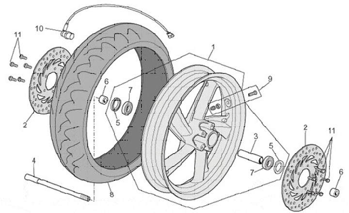 Katup untuk pelek tubeless, panjang -PIAGGIO TR413- 0° - Ø = 11,3mm
