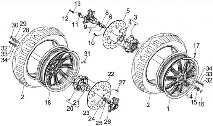 Hub roda depan -PIAGGIO- Vespa GTS 125 (ZAPMA3100, ZAPMA3200, ZAPMA3700), Vespa GTS 150 (ZAPMA3200, ZAPMA3100), Vespa GTS 250 (ZAPM45100), Vespa GTS 300 (ZAPM45200, ZAPM45202, ZAPMA3300), Vespa GTS HPE 300 (ZAPMA3600, ZAPMD310), Vespa GTS Super 125 (ZAPM4