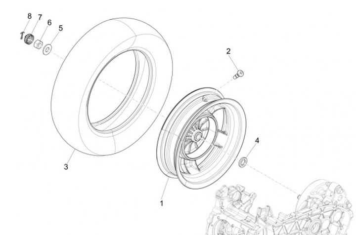Mur roda belakang -PIAGGIO- Vespa PX (dari tahun 1984), T5 125cc, PK XL, Cosa, Piaggio otomatis, Gilera otomatis