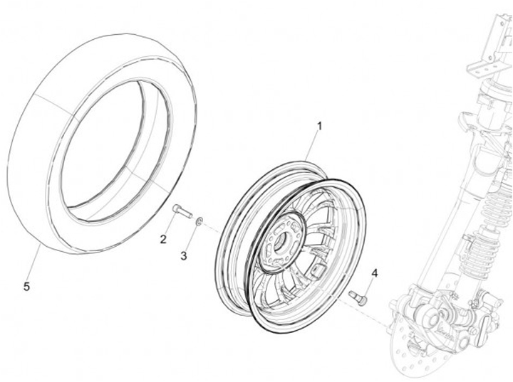 Set roda termasuk kit konversi -PIAGGIO 3.00-12 inci - 14 jari-jari - tipe Vespa Sprint 50-150 cm - cocok untuk Vespa GT, GTL, GTS 125-300, GTV - perak-abu-abu