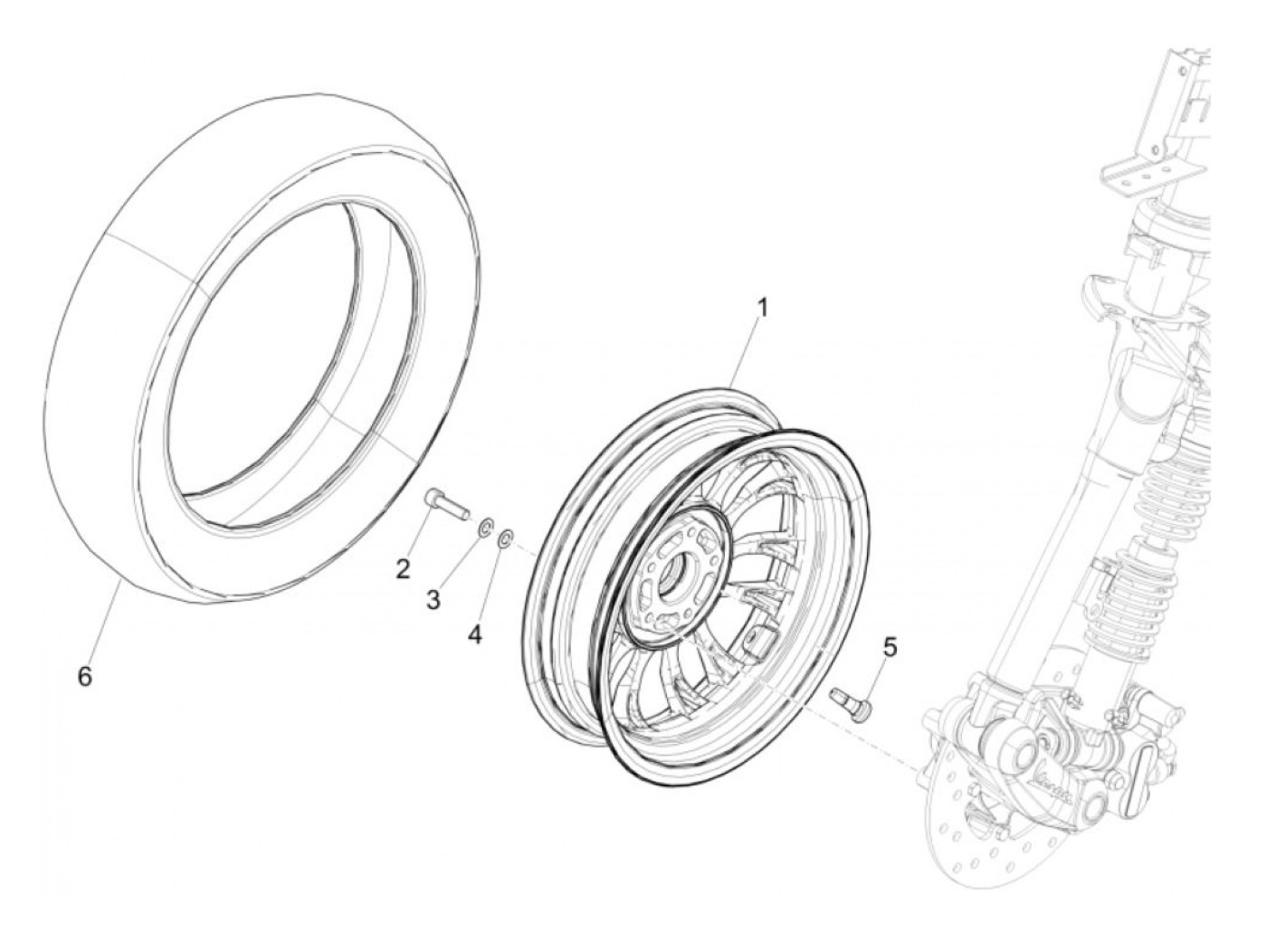 Pelek depan, emas -PIAGGIO 3.00-12 inci - 14 jari-jari- Vespa Sprint 125 (ZAPMA1300, ZAPMA1301, ZAPMD1101), Vespa Sprint 150 (ZAPMA1400, ZAPMA1401, ZAPMD1201), Vespa Sprint 50 (ZAPC53201, ZAPC536B, ZAPCA0101, ZAPCA0103, ZAPCA0201, ZAPCA0203, ZAPCA06B, ZA