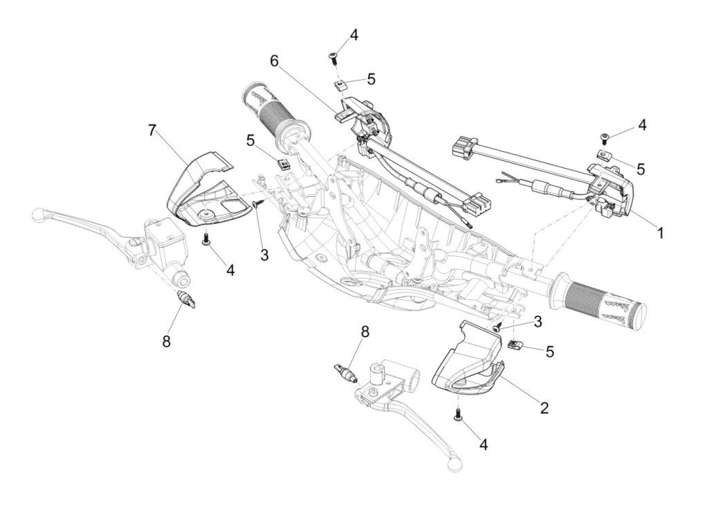 Unit sakelar, krom, kanan -PIAGGIO- Vespa Primavera 50 (ZAPC53100, ZAPC53200, ZAPC53300, ZAPC53302, ZAPCA0100, ZAPCA0102, ZAPCA0200), Vespa Sprint 50 (ZAPC53101, ZAPC53201, ZAPC53301, ZAPC53303, ZAPCA0101, ZAPCA0103, ZAPCA0201)