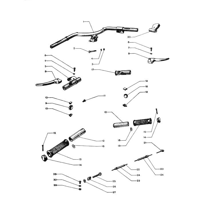 Tuas rem - Tuas kopling -LAMBRETTA- B (hanya kiri), C (Seri 1), LC (Seri 1)