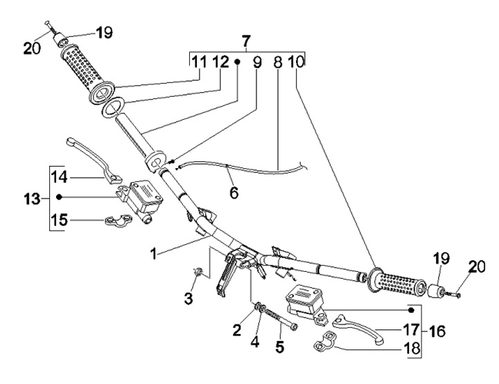 Karet grip kiri Ø=22mm -PIAGGIO- Vespa GT L 125 (ZAPM31100, ZAPM31101), Vespa GT L 200 (ZAPM31200), Vespa GTS 125 (ZAPM31300), Vespa GTS 250 (ZAPM45100, ZAPM45101), Vespa GTS 300 (ZAPM45200, ZAPM45202), Vespa GTS Super 300 (ZAPM45200), Aprilia SR Max 125