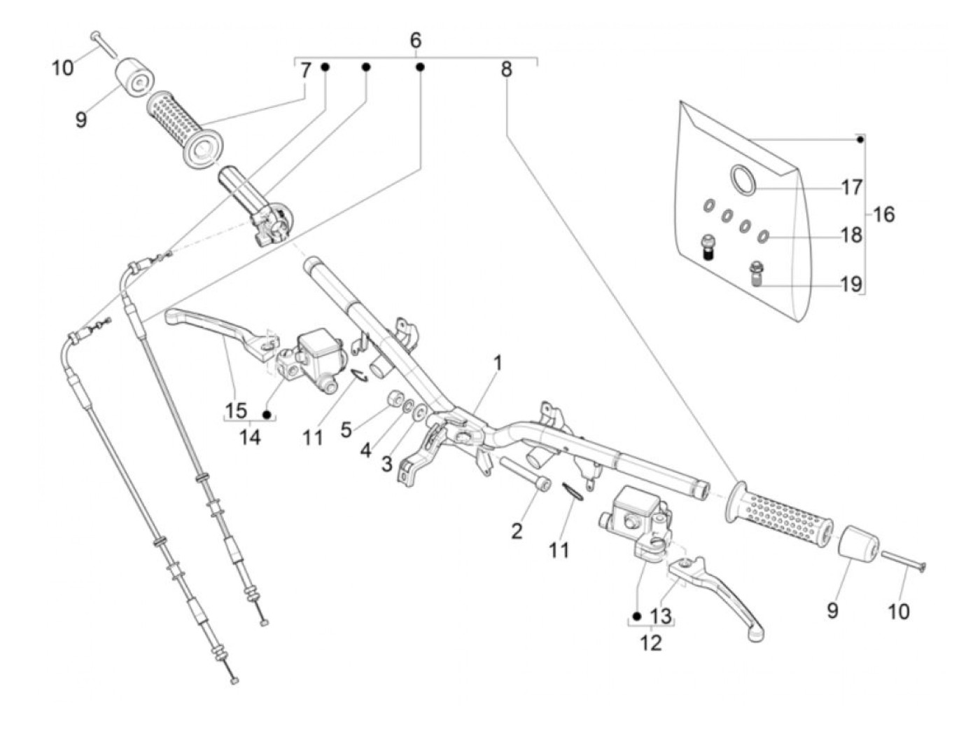 Pegangan throttle dan kabel throttle -PIAGGIO- Vespa GTS HPE 300 (ZAPMA3600, ZAPMD310), Vespa GTS Super HPE 300 (ZAPMA360, ZAPMD3100)