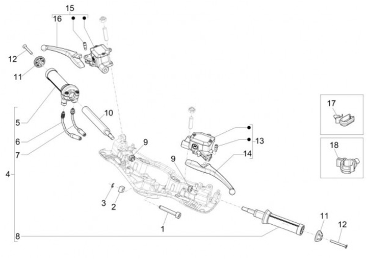 Mur kepala kemudi -VESPA- PX, PK, Rally180 (VSD1T), Rally200 (VSE1T), Sprint150 (VLB1T), 180 SS, Super, TS125 (VNL3T), GT125 (VNL2T), GTR125 (VNL2T), ET3, PV125, V50, V90