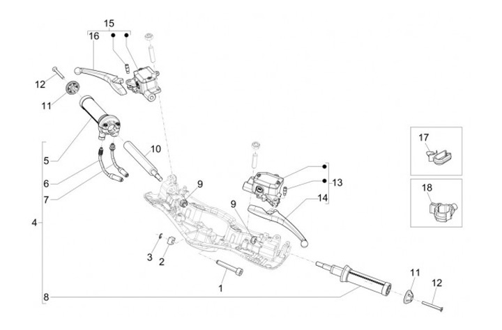 Mur kepala kemudi -VESPA- PX, PK, Rally180 (VSD1T), Rally200 (VSE1T), Sprint150 (VLB1T), 180 SS, Super, TS125 (VNL3T), GT125 (VNL2T), GTR125 (VNL2T), ET3, PV125, V50, V90