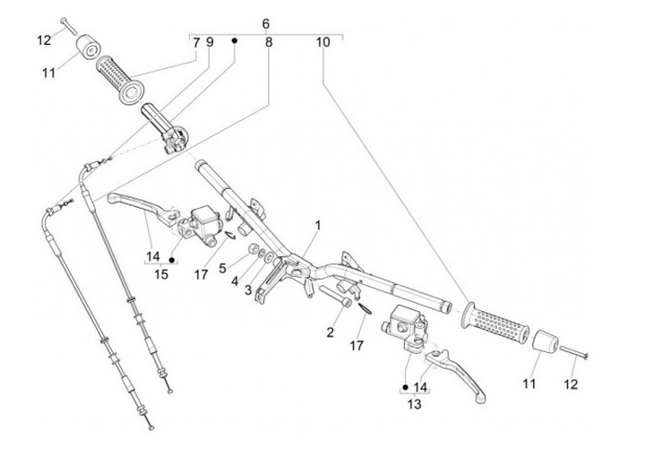 Pegangan throttle dan kabel throttle -PIAGGIO- Vespa GTS 250 (ZAPM45100), Vespa GTS 300 (ZAPM45200, ZAPM45202), Vespa GTS Super 125 (ZAPM45300, ZAPM45301), Vespa GTS Super 300 (ZAPM45200, ZAPM45202)