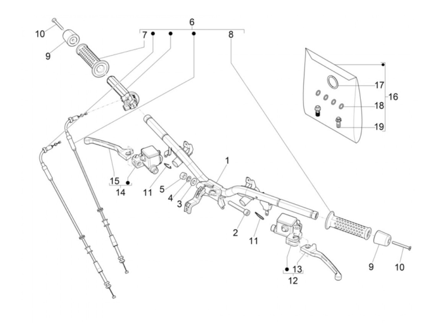 Karet pegangan kiri (dengan tulisan Vespa) -PIAGGIO- Vespa GTS 125 (ZAPMA3100, ZAPMA3200, ZAPMA3700), Vespa GTS 150 (ZAPMA3200, ZAPMA3100), Vespa GTS 300 (ZAPMA3300), Vespa GTS HPE 300 (ZAPMA3600, ZAPMD310), Vespa GTS Super 125 (ZAPM45300, ZAPMA3100, ZAPM