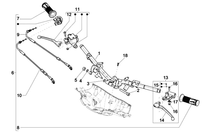 Tuas rem, kiri -PIAGGIO- Vespa Primavera 125 (RP8M82100, RP8M82310, RP8M82500, RP8M82821, ZAPM81100), Vespa Sprint 125 (RP8M82111), Vespa Sprint 150 (ZAPMA1400, ZAPMA1401, ZAPMD1201), Vespa LT 125 (RP8M66503), Vespa LT 150 (RP8M66603), Piaggio Fly 125
