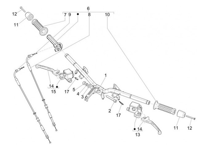 Pegangan throttle dan kabel throttle -PIAGGIO- Vespa GTS 250 (ZAPM45100), Vespa GTS 300 (ZAPM45200, ZAPM45202), Vespa GTS Super 125 (ZAPM45300, ZAPM45301), Vespa GTS Super 300 (ZAPM45200, ZAPM45202)