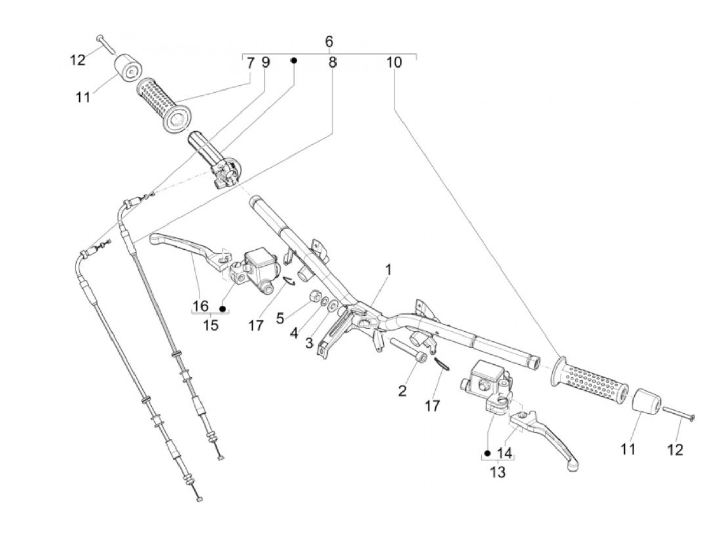 Pegangan throttle dan kabel throttle -PIAGGIO- Vespa GTS 250 (ZAPM45100), Vespa GTS 300 (ZAPM45200, ZAPM45202), Vespa GTS Super 125 (ZAPM45300, ZAPM45301), Vespa GTS Super 300 (ZAPM45200, ZAPM45202)