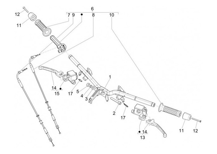 Pegangan throttle dan kabel throttle -PIAGGIO- Vespa GTS 250 (ZAPM45100), Vespa GTS 300 (ZAPM45200, ZAPM45202), Vespa GTS Super 125 (ZAPM45300, ZAPM45301), Vespa GTS Super 300 (ZAPM45200, ZAPM45202)