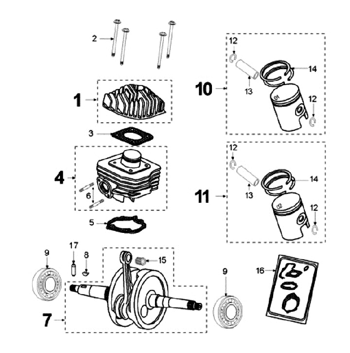 Gasket set mesin -RMS- Peugeot 50 cc AC (vertikal) - SPEEDFIGHT1 50 cc AC, SPEEDFIGHT2 50 cc AC, TKR50, TREKKER50, VIVACITY50, ELYSEO50, SQUAB50, SV50, ZENITH50, BUXY50, ELYSTAR50, LOOXOR50, SPEEDAKE