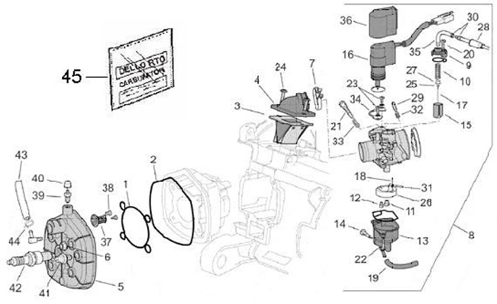 Karburator -PIAGGIO- Dell'Orto PHVA 17,5 ID- Piaggio Zip SP2, Aprilia SR50 Street, SR50 R, Derbi GP1