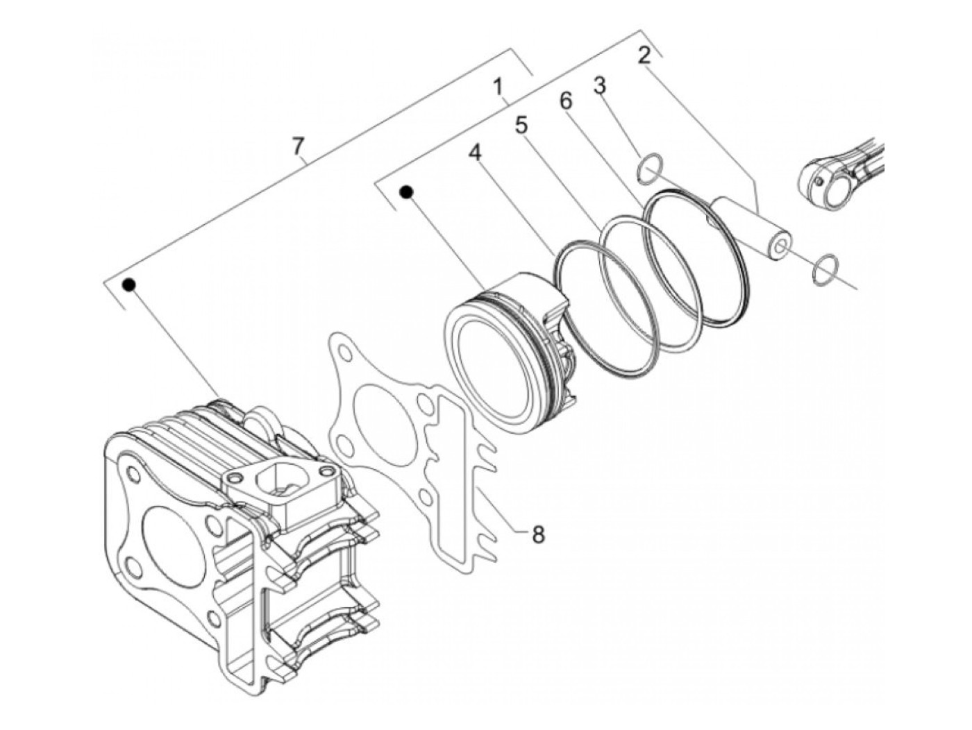 Piston lengkap -PIAGGIO- Vespa LX 125, LXV 125, S 125, Piaggio Fly 125, Liberty 125, Skipper ST 125, TPH 125, X8 125, Aprilia Mojito 125, Sport City One 125, SR Motard 125, Derbi Boulevard 125 - Besi tuang - Kategori (3)