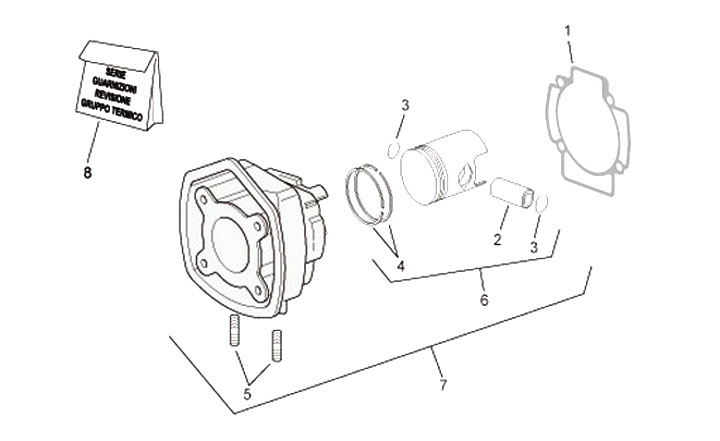 Silinder set paking -RMS 50 ccm- Piaggio 50 ccm LC (kepala 4 sudut)